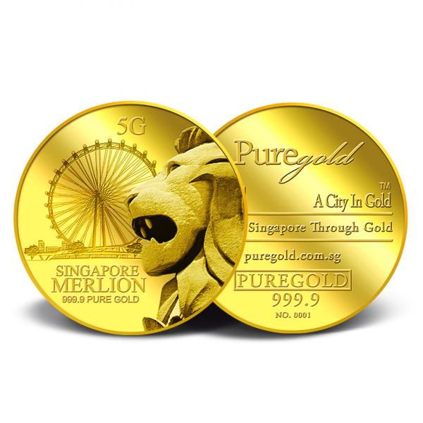Puregold 99.99 เหรียญทองคำแท้ 5g ลาย Singapore Merlion Flyer ทองคำแท้จากสิงคโปร